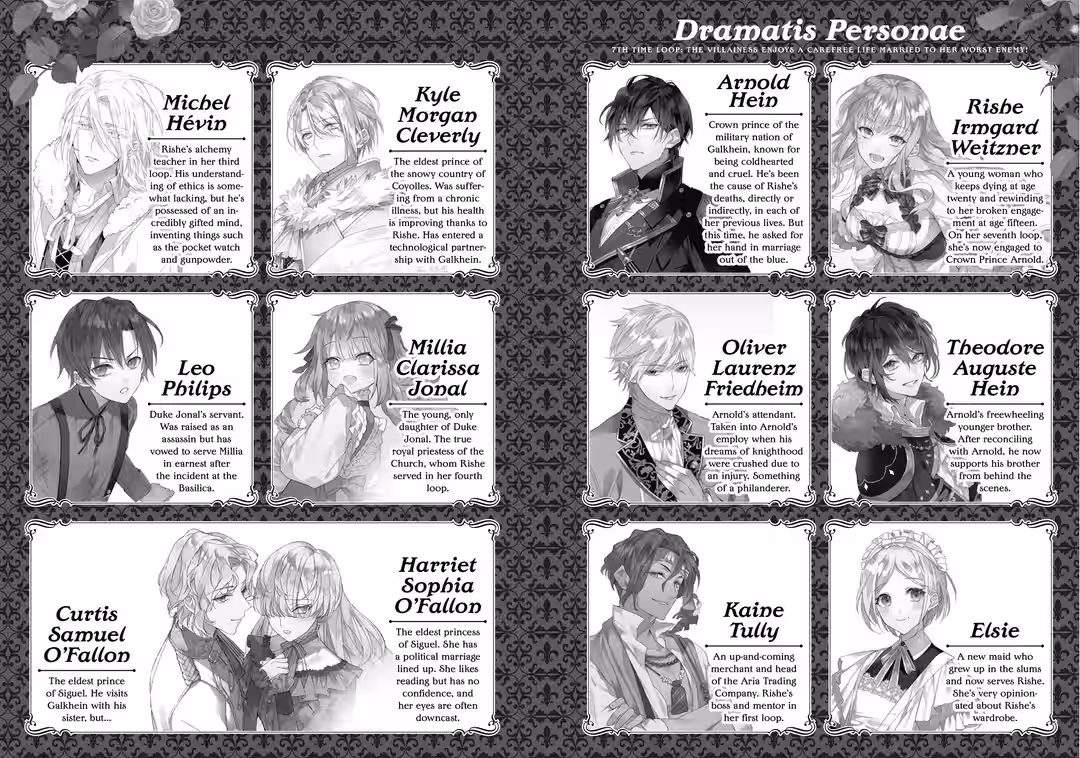 This volume centers around people Rishe interacted with in her fifth life. In this installment, Arnold’s open affection for Rishe reaches a five out of ten! This meter doesn’t refer to Arnold’s feelings for Rishe but rather the expression of those feelings, and it rises when Rishe succeeds at cultivating some emotional intelligence in Arnold. I’m sure we’ll find out what level his actual feelings are at one of these days…
