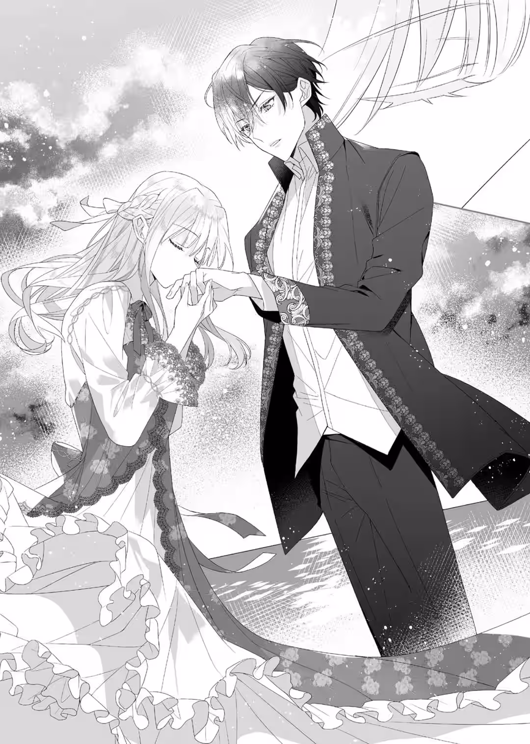 Pulling Arnold’s hand behind her, Rishe continued pleading her case to Raul. “Prince Arnold’s face is the handsomest in the world, of course, but it’s not just his face! If he looked at you with those eyes and called your name with his voice, then anyone would—”