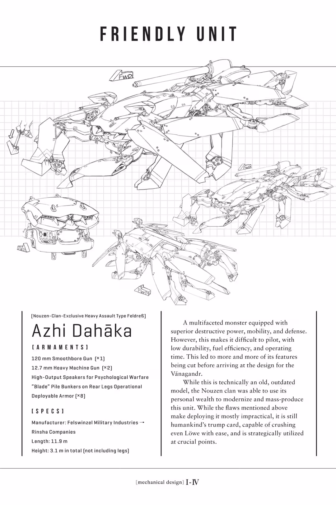 To I-IV. The Azhi Dahāka is just too cool. I really regret we couldn’t show it in the anime. I’d love to see it in motion…!