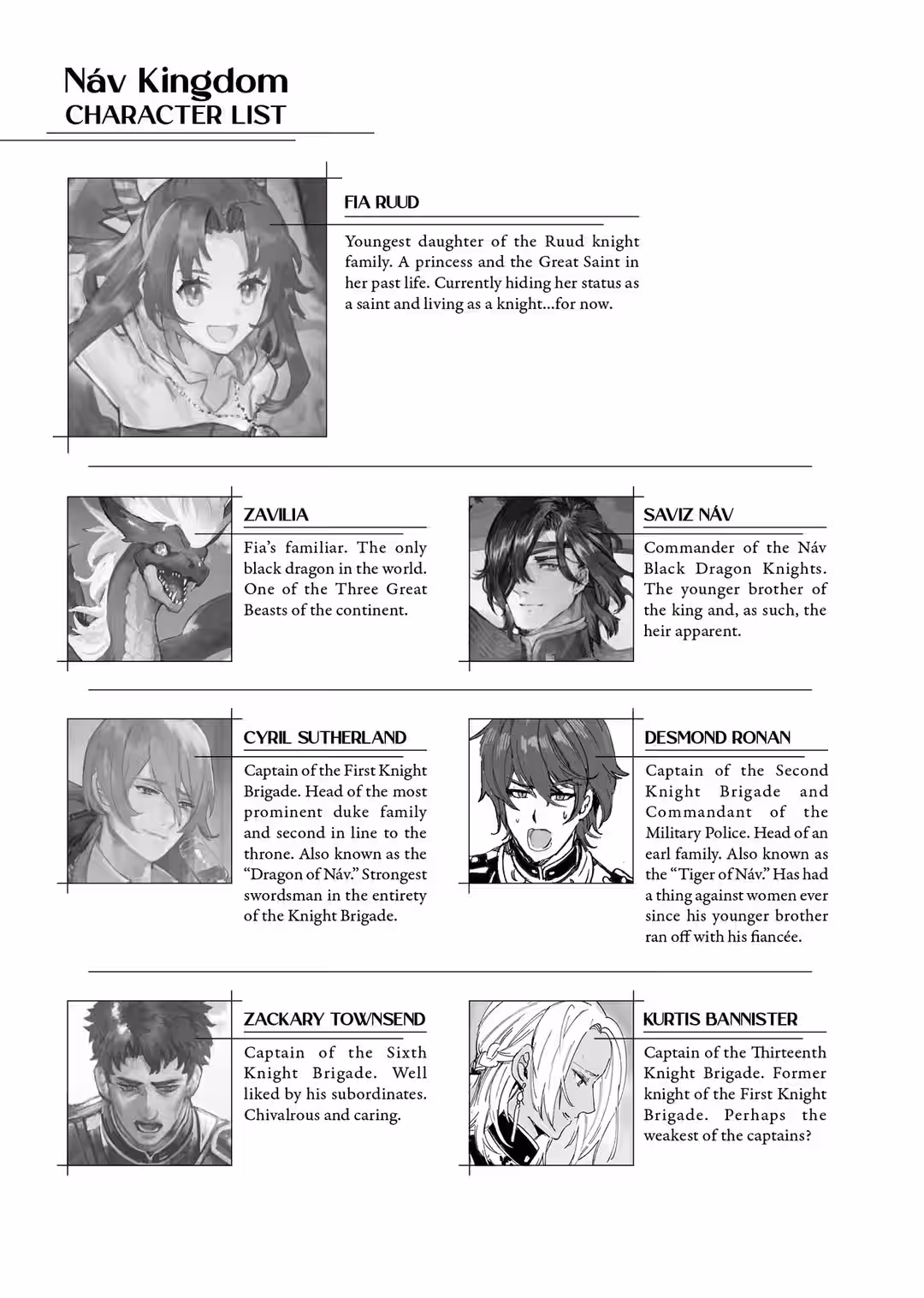 FIA, THE YOUNGEST DAUGHTER of the Ruud knight family, master of a black dragon and new recruit to the First Knight Brigade, must hide the fact that she was the Great Saint in her previous life, out of fear of the demon that killed her.