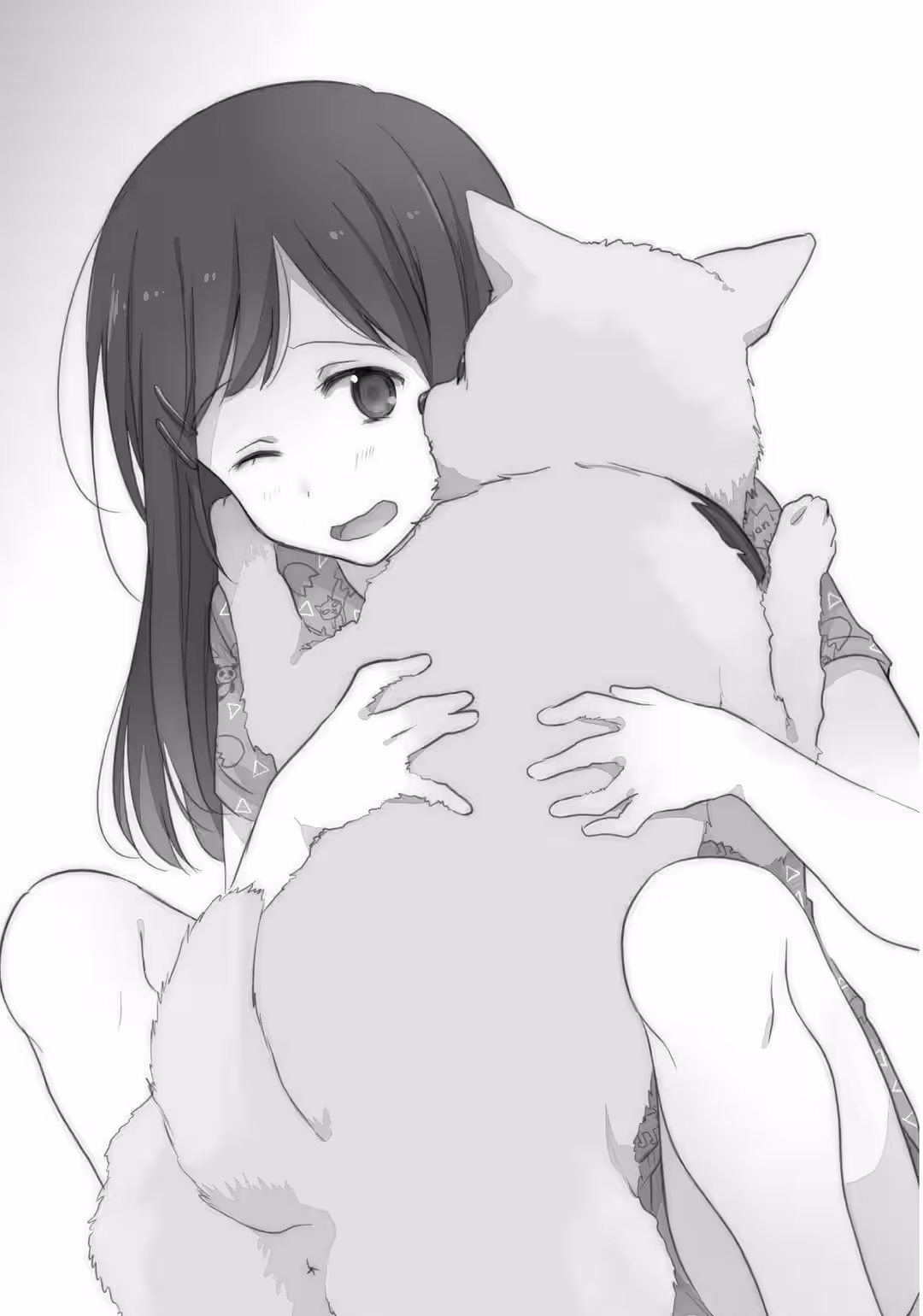 My little sister walked in, and I could see she was sweating, which didn’t surprise me since she just went to take her fish tank over to the house next door. My sister was a big-time animal lover, and whenever we went on long trips, she always asked the neighbor lady to feed her fish. Plus, now she has this new pet to take care of, I thought to myself as I pinched a strand of Yashiro’s hair. It was so sparkly and soft, you could probably make ribbons out of it.