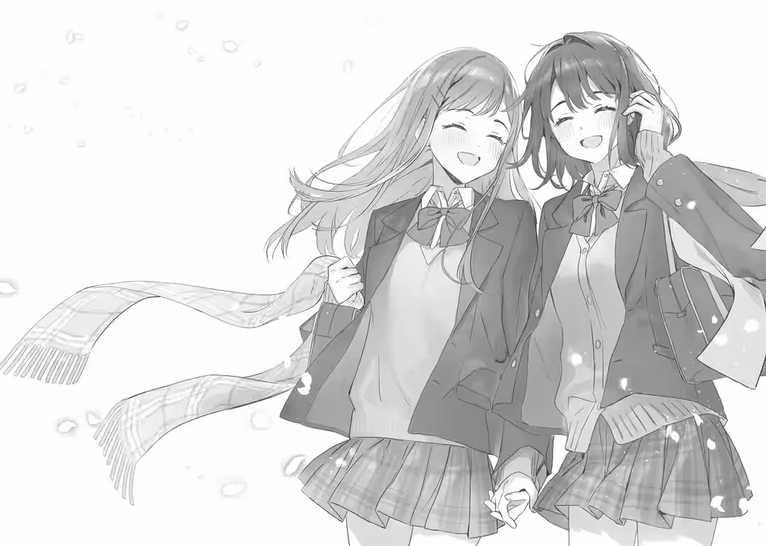 At any rate, we finished grocery shopping and left the store to see the sun half-concealed behind a cloud. As it shifted through the sky, the sunbeams on our path narrowed into thinner and thinner streams before disappearing entirely as though someone had shut a door on us. For a while, Adachi and I just stood there and watched the scenery. Then Adachi took my free hand in hers.