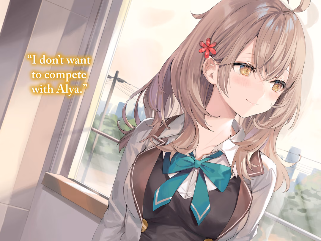 “I kind of wish you would be a little more straightforward with your answer,” Alisa teased, smiling. Masachika unsubtly looked away and snapped: