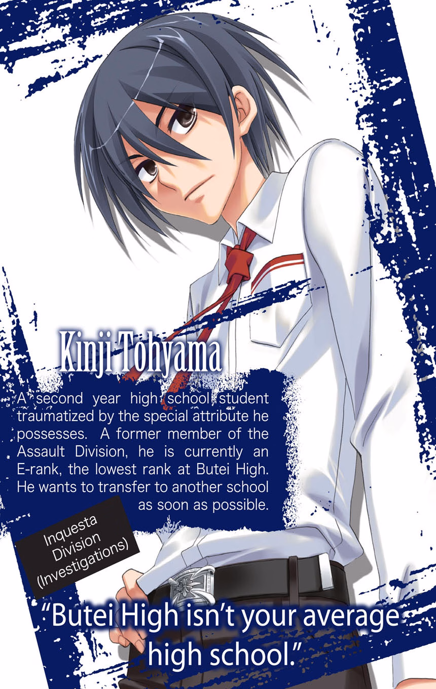 Butei were people who served as a countermeasure against violent crimes under a newly established and internationally acknowledged qualification. Those who were in possession of a Butei license were permitted to carry firearms and were given the power of arrest, and they could operate within the jurisdictions of the police force. However, the difference between the police and the Butei was that the Butei were driven by money. As long as someone was footing the bill, a Butei would take on any job regardless of how dangerous or trivial it may be, provided it was in accordance with Butei regulations. In other words, they were a jack-of-all-trades. At Tokyo Butei High School, in addition to general academic subjects, students could take specialized courses related to Butei activities just as the school’s name implied. There were a variety of specialized courses to choose from. The building I just passed on my right, for example, was specifically for the Inquesta department and all related classes. It was the division I transferred to during the third semester of my first year here, and the students learned about traditional deduction methodology and all kinds of techniques used in detective work. I guess you could say it was the most normal department this school had. Up ahead was the Connect department (communications), and beyond that was the Repier department (forensics). These were all fairly peaceful places to study, but if you continued ahead a little farther, you’d arrive at the department I was affiliated with up until the end of my second semester last year, the notorious Assault department.