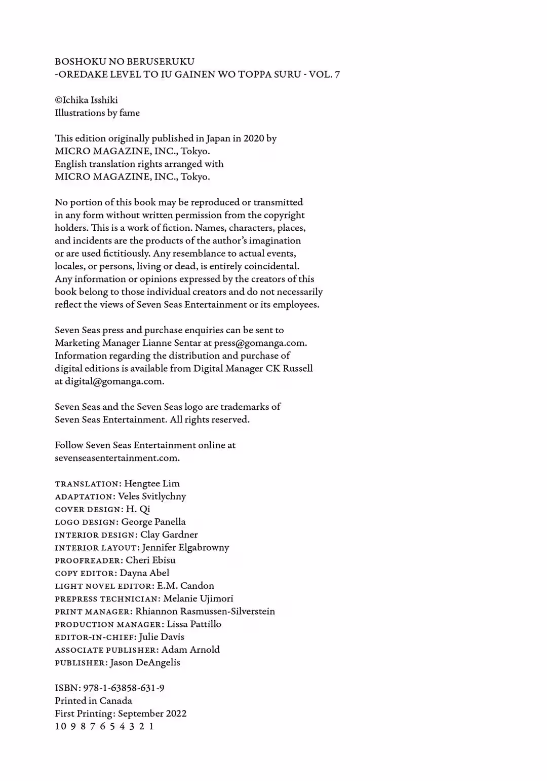 Finally, I’m grateful to my editor, fame for all the wonderful illustrations, and all the people who helped with the publishing of this seventh volume.