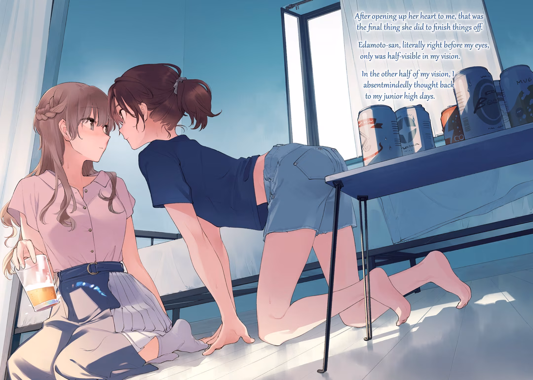 It was news to me that Edamoto-san was living away from home. There was still so much I didn’t know about her. I hadn’t even asked her why she’d been crying when I first met her, nor had I seen her cry again since then. I felt some belated curiosity stir within me but got the sense this wasn’t a good time to bring it up.