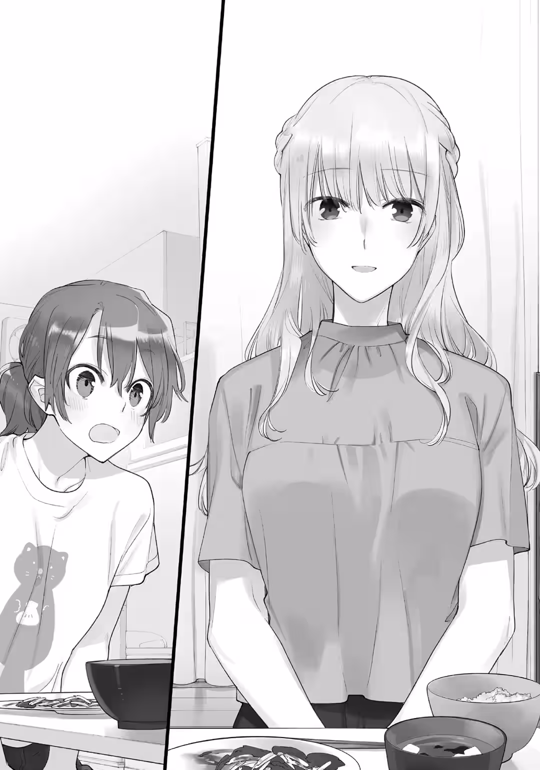“Why don’t you come visit sometime, Sayaka-senpai? We can have tea and, umm…” Edamoto-san glanced at her shopping bag. “…I can offer you some bean sprouts.”