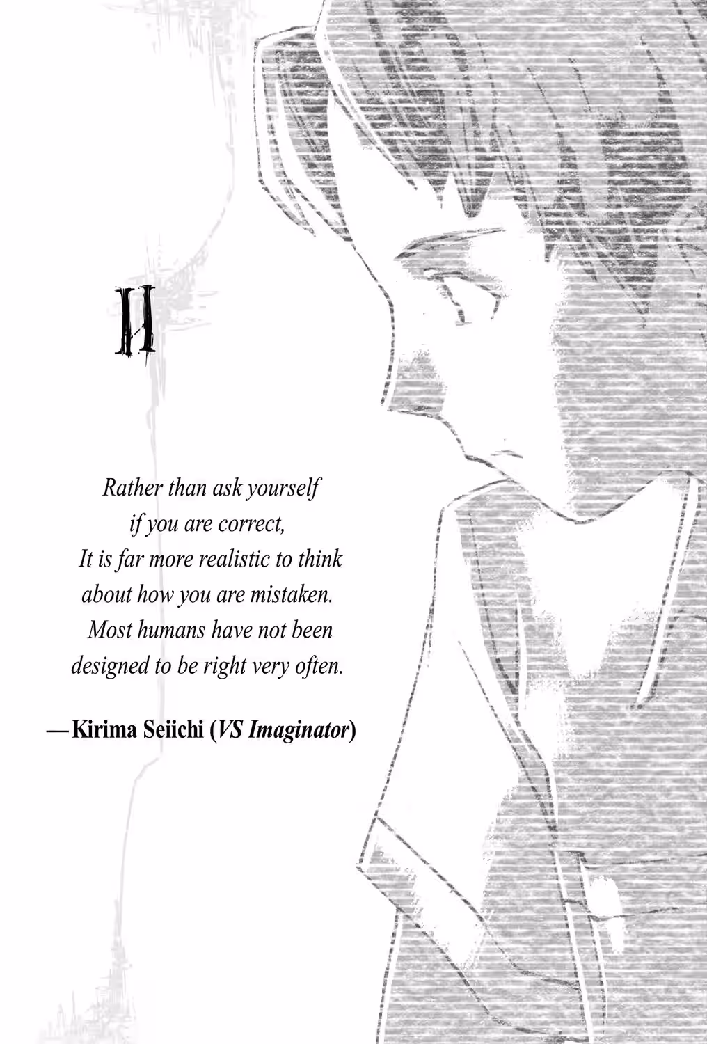 As you can see, there is quite a noticeable difference between the above version and the one we used. In the case of this quote, the original novel Terre des Hommes was translated into English from French, but in our case, we have a passage that was translated from French into Japanese and then into English. Thematically, the wording in the English version is so different from the Japanese version that it no longer seems to relate to the themes present in the Boogiepop Returns: VS Imaginator novels. For this reason, we have decided to go with our own version of the quote to remain accurate to Kouhei Kadono’s original thematic interpretation of the passage.