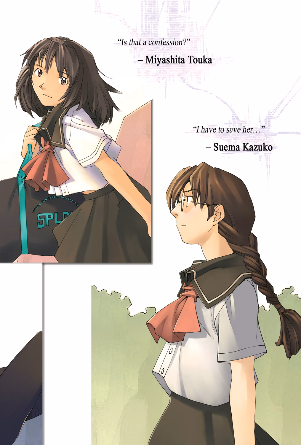 “You must go to The Ladder, and find the girl, Orihata Aya. Bring her to this boy. The man you are looking for, Asukai Jin, is hanging from the roof.”