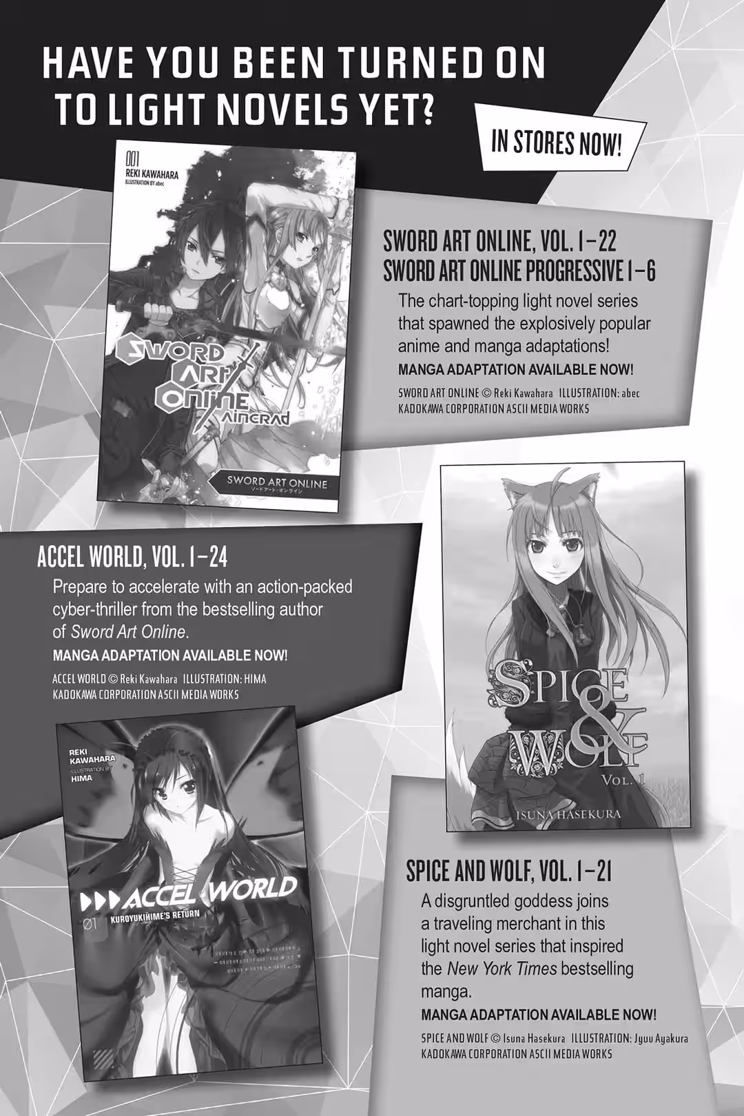 When we announced this book on Twitter, we got a lot of responses, such as, “Why did you go from that cliffhanger in Volume 6 to a short story collection?” and “Are you trying to keep us hanging?” and “Publishers have a bad habit of putting out short story collections as soon as a series starts to take off,” and “Yuki Yaku, stop googling yourself and get writing!” I couldn’t help agreeing with some of them, but hopefully my critics will realize that I actually wanted to write a short story collection.