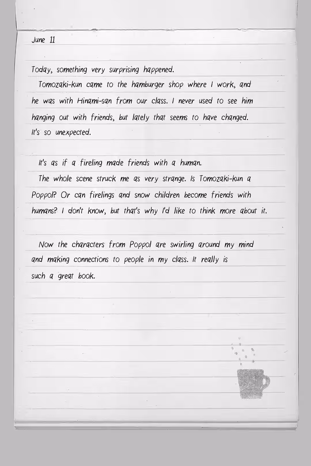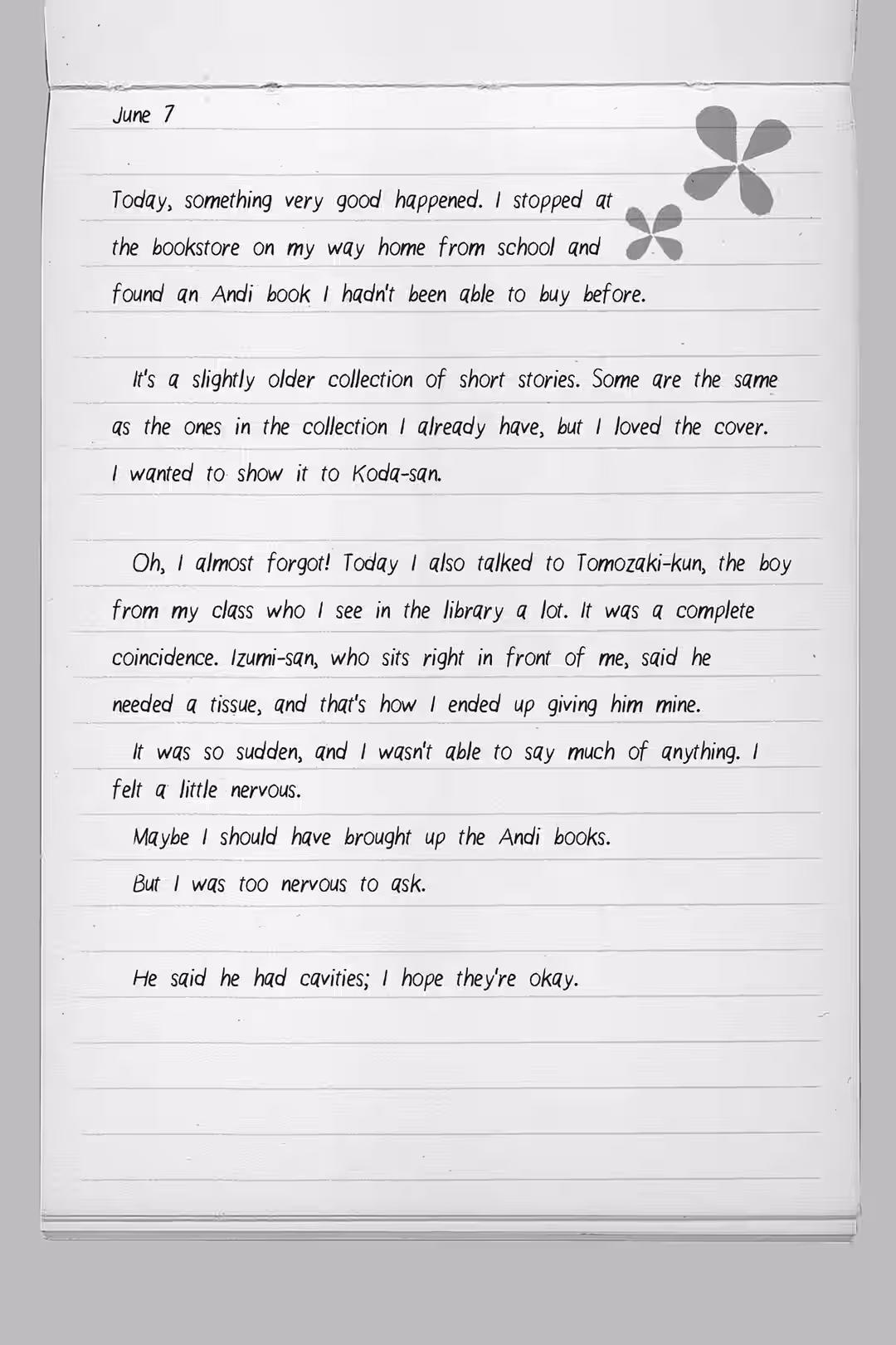 While I was busy refusing to look at them, my feelings had grown bigger. I think part of me hoped that if I released those feelings by telling Tomozaki the truth, I’d feel better.