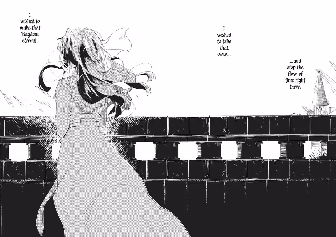 She looked down at the kingdom from the hill. Gazing at the changing kingdom, she said, “Even if I cannot make the Kingdom of Eternity…”