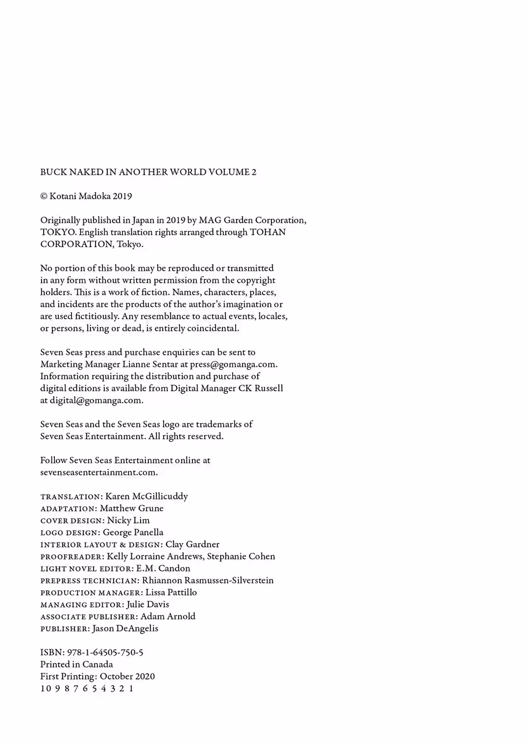 To my book manager O-sama and all the other publishers, thank you for your tireless guidance not only with the earlier stories of Buck Naked, but this new one as well. Thank you also for all the hard work you put in to bring the story to all its comic book forms.