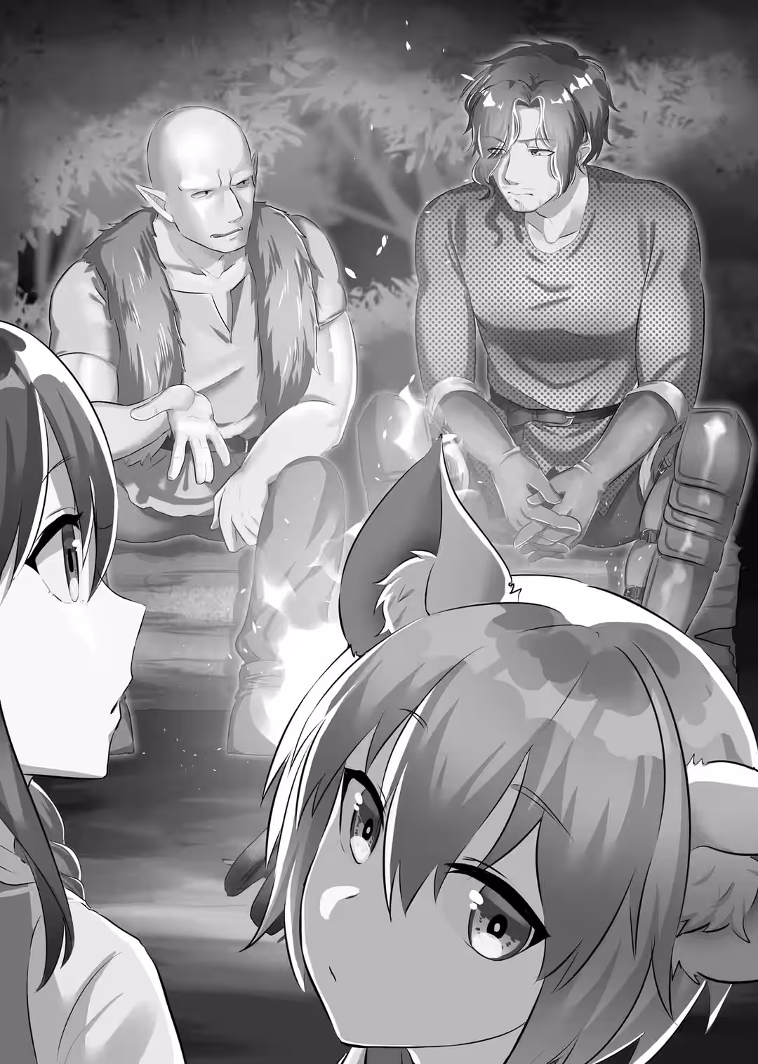 The village chief’s voice cut through my thoughts. “You spend all your evenings grousing over your drinks in the mess hall of the adventurer’s guild, do you not? I have responsibilities in managing the territory, so I don’t ever take alcohol personally, but I can give you someone to talk to. I haven’t been able to leave the village in the many, many years since I married into Apegut, so I would love to hear stories about the outside world.”