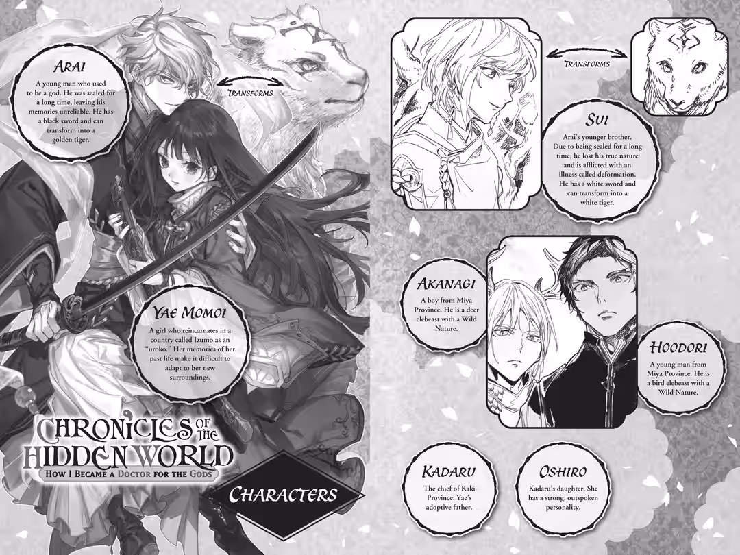 When comparing her current life to her previous one, she often wondered if Izumo—the country where she lived now—was Japan from the distant past or one possibility for its distant future. It was as if civilization had collapsed through repeated progression and regression, changing the shape of countries in the process. Even the place of people and animals in the world defied all her previous understanding. People, beasts, and their respective paths had been thrown into disarray by the merciless hand of fate.