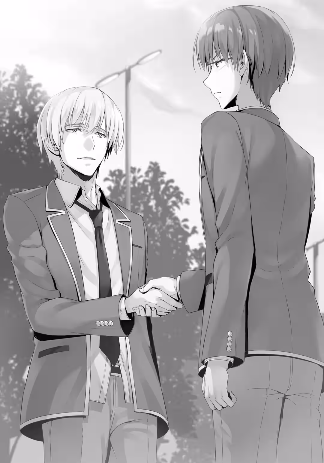 “Good morning,” said Keisei, greeting me as I got into the elevator with him. I responded in kind. Since there were several students from the other classes with us, we didn’t really engage in any chit-chat. We just kept quiet, and once the elevator reached the lobby, we left the dorms together.