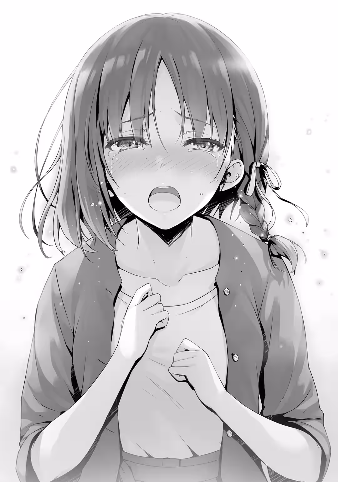 She suddenly extended both hands, holding them out in a gesture like she was asking me to stop rushing her. I decided to wait, quietly watching her and letting her take her time. Then, less than a minute later, Kei looked at me, and I could see the resolution in her eyes.