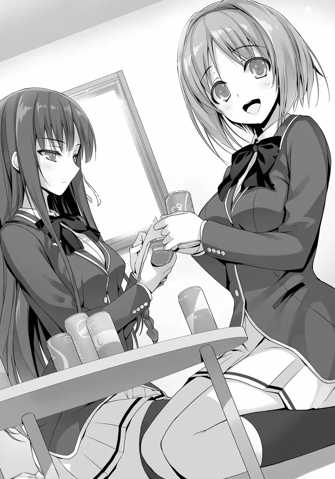 I reluctantly sat up at my desk. A girl with beautiful, sharp eyes and long black hair that framed her face stared down at me. Her name was Horikita Suzune, a student of the Tokyo Metropolitan Advanced Nurturing High School, Class D, and my classmate.