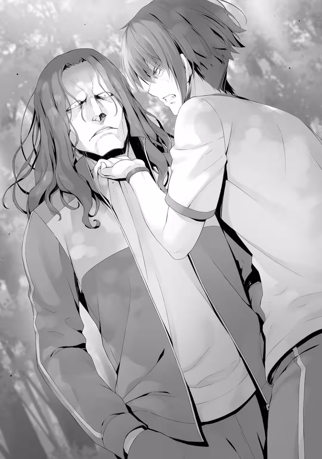 I passed by a few students from Class 2-D and we exchanged a few mutual words of praise and encouragement for our respective efforts. Then, I made my way to the deck. Once I arrived there, I saw a rather interesting pair. They were facing each other and engaged in conversation. They weren’t exactly trying to hide anything about their conversation, though, and soon enough, one of them noticed me standing there. His face was covered with cuts and bruises, indicating that he had been in a fierce fistfight with Housen during the exam.