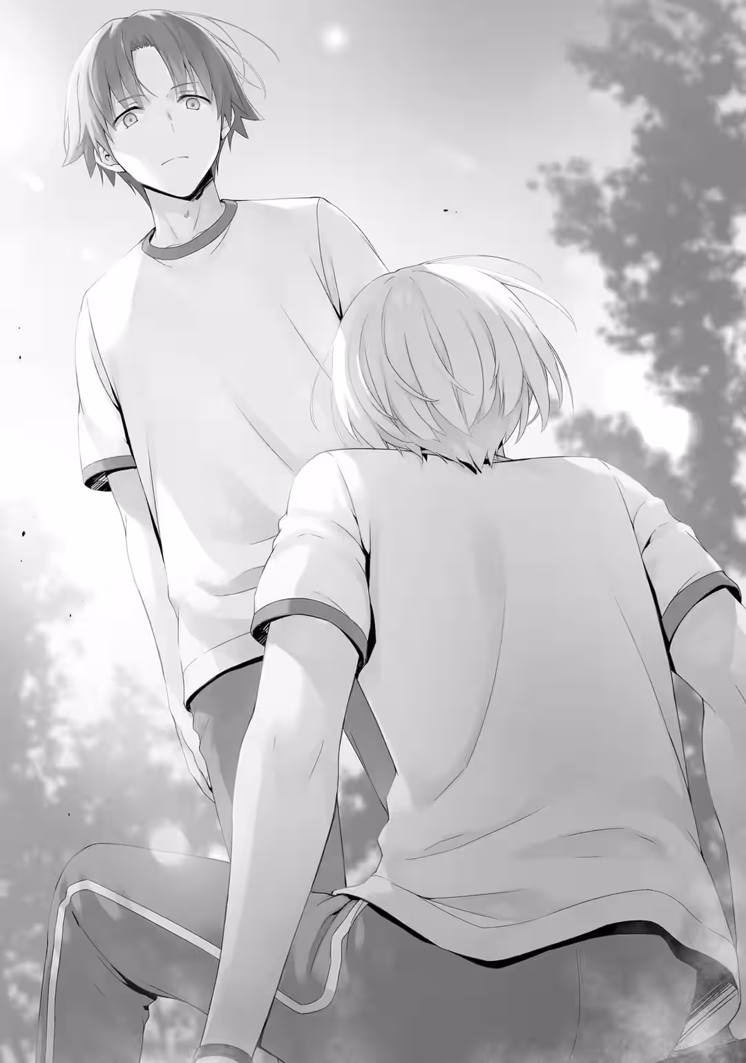 I supposed that I wasn’t going to find an answer thinking about it now, though. At any rate, this long, drawn-out special exam had come to a safe conclusion. Miraculously, we had managed to get through the summer without a single student from our grade level getting left behind. I had also unexpectedly established that Amasawa Ichika was a student from the White Room.