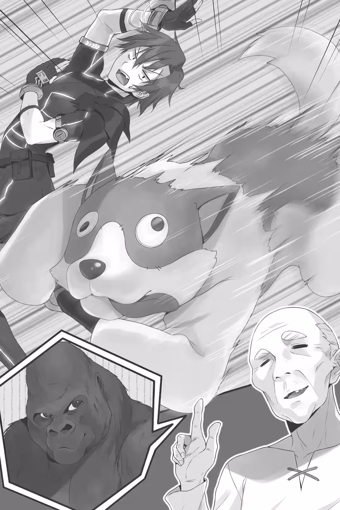 “…I’m not dressed this way by choice, you know. Tiger Man said he’d release me early if I did my work while wearing this outfit… Hey, you’re a Battle Chimera like me, right? Humans really are fools, aren’t they? Especially the ones here…,” Russell says sagely.