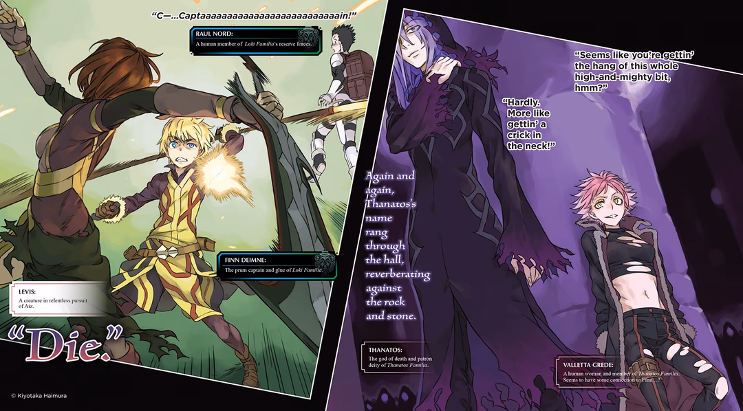 The voice came from the central tower of Loki Familia’s home, Twilight Manor, where Loki currently had slovenly kicked up her feet on the desk inside her room on the topmost floor. An aura more disconcerting than even her words surrounded her as she glared off into nothing.