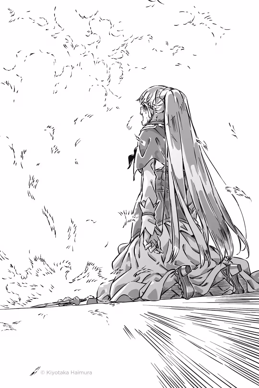 Filvis Challia disappeared. She vanished into soot and cinders, smiling for Lefiya until the very end. What remained of her rose in a pillar of dust, setting off on a journey as it left Lefiya’s arms.