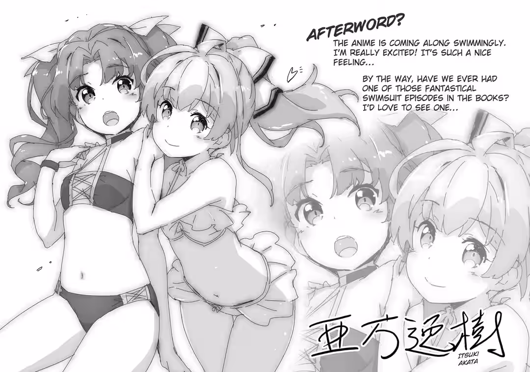 And finally, to the chief editor; to Itsuki Akata, the illustrator; to Yoichi Yamakami, the cover designer; to everyone involved in the proofreading, editing, printing, binding, distribution, and selling of this book; to all the reviewers on Let’s Be Novelists who gave me their impressions, guidance, suggestions, and advice; and most of all, to everyone who’s taken these stories into their homes, I thank you all from the bottom of my heart.