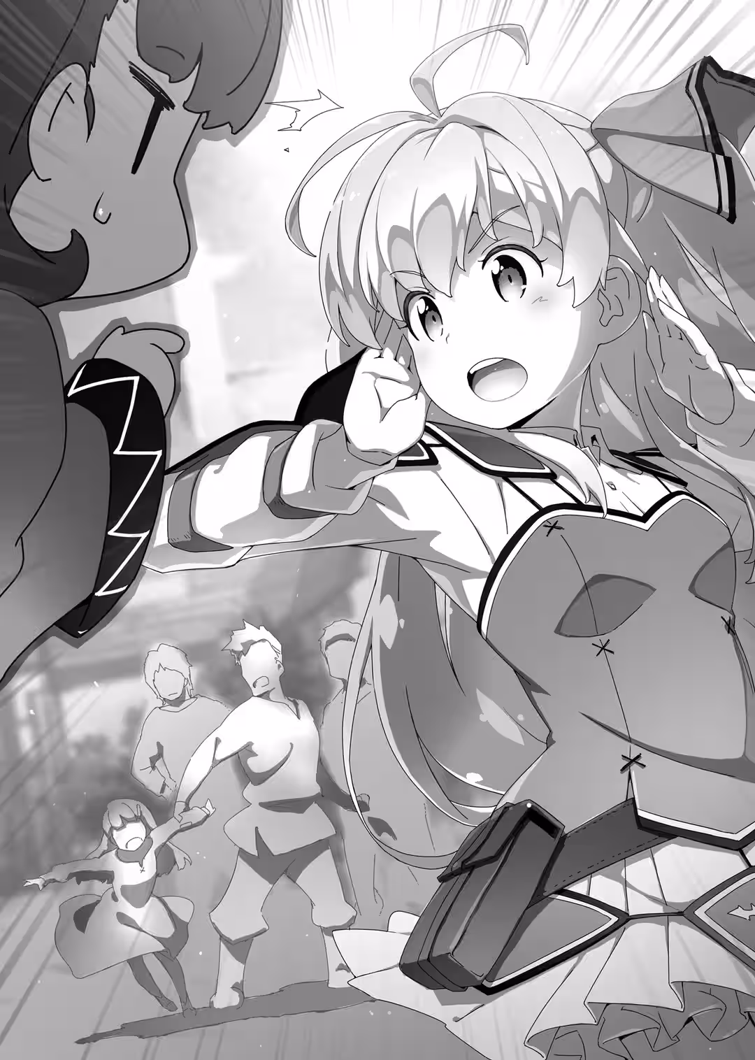 Then, the pair of them silently pointed…to a certain fellow party member, whose confusion was clear on her face.