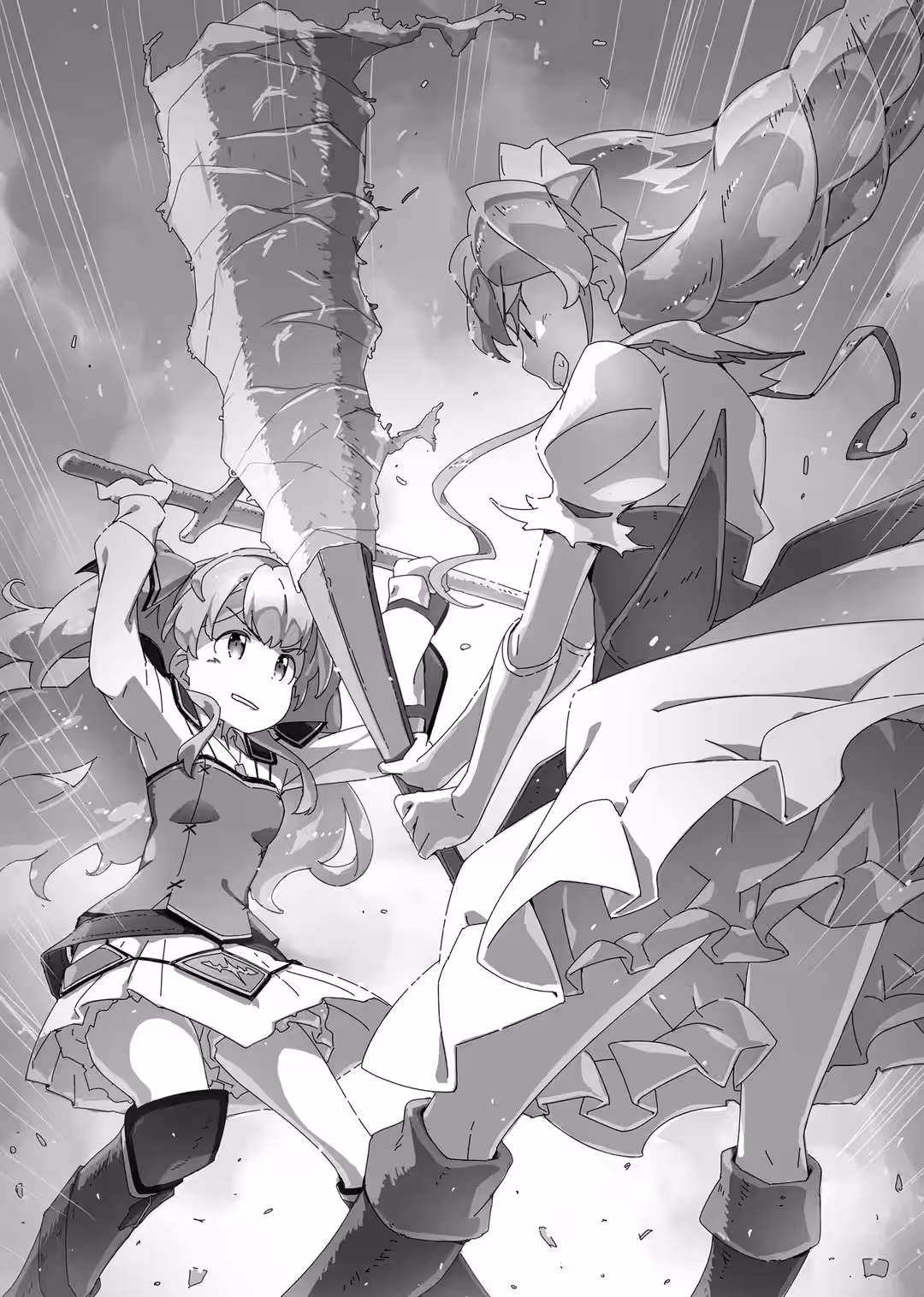 Naturally, during the aforementioned tests, they had not been especially taken with neither the fact that they would have to get buck naked in front of friends and foes when they were transforming, nor with the fluffy, frilly uniforms they would have to change into. Even though Mile had already developed a method that would perfectly keep their “vital parts” just barely out of view by way of mysterious light and camera angles, staff placement, distracting stars, and the forceful use of a certain kind of magic.