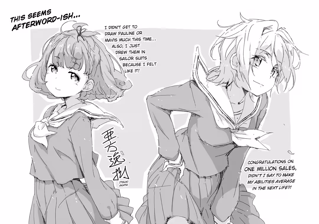 Also, look forward to Volume 2 of the spin-off manga, Didn’t I Say to Make My Abilities Average in the Next Life?! Everyday Misadventures, on sale March 12! I hope you enjoy the wacky antics of the bite-sized, adorable “everyday” Crimson Vow… Though seriously, why is the everyday Mile so obsessed with little girls and cat ears?