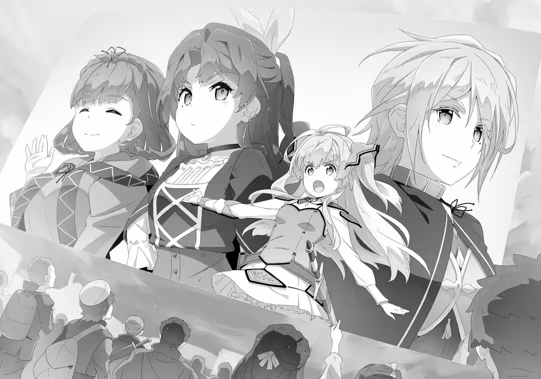 “We, the Wonder Trio, are the ones who shall take Miss Adele’s hand as she travels off on this new adventure, reaching out to say, ‘Come along with me!’ We shall never let anyone else serve as her companions! We shall follow you to the ends of the earth, Miss Adele… No, beyond there, even! Now then, Miss Monika, Miss Aureana, let us go!”