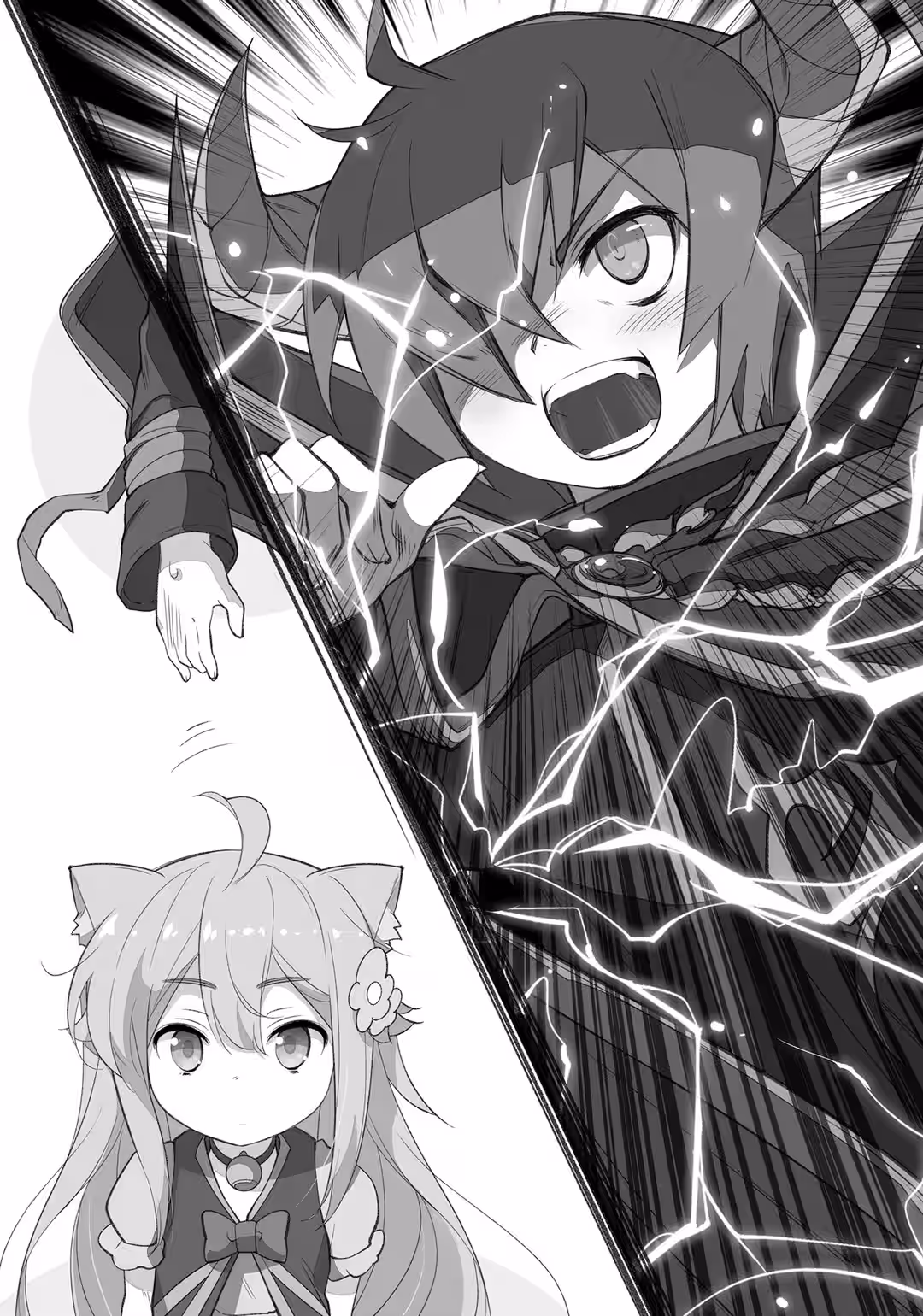 “Master weird today!” Noela snarled. With a deadly serious expression, she backed away from Short Reiji. “Same tall as Noela! Smell different! Like Ejil!”