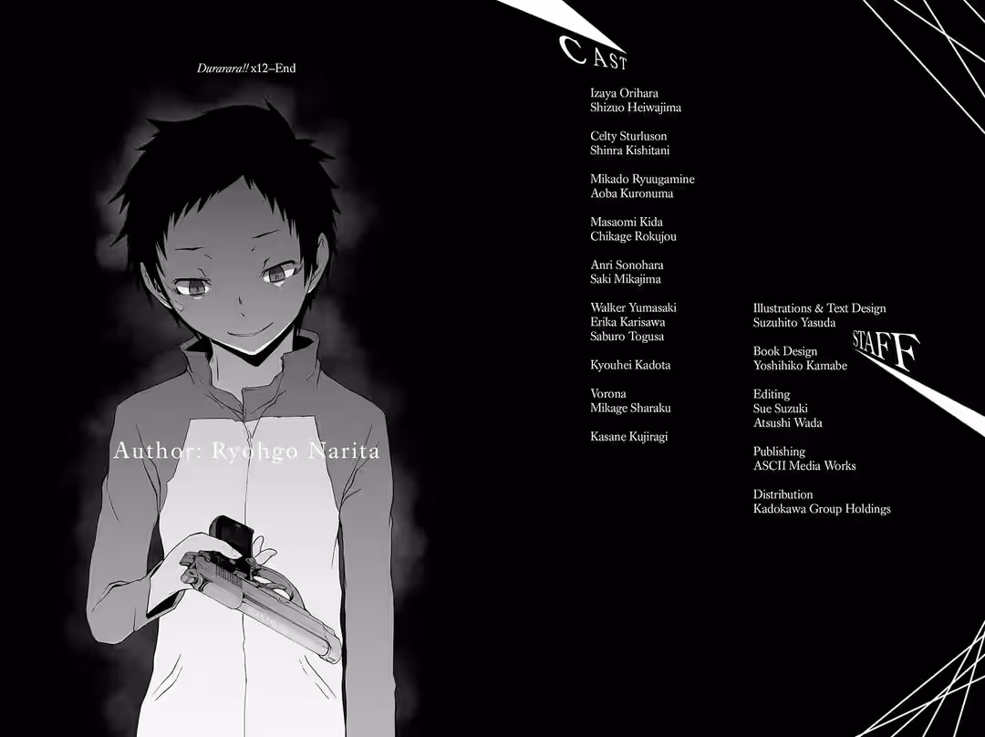 As Durarara!! and Baccano! both head toward a climax, I’m in the mood to tackle new challenges, so I hope you will continue to patronize not just Durarara!!, but the many projects I, Ryohgo Narita, work on. I will do my best to be worthy of your time.