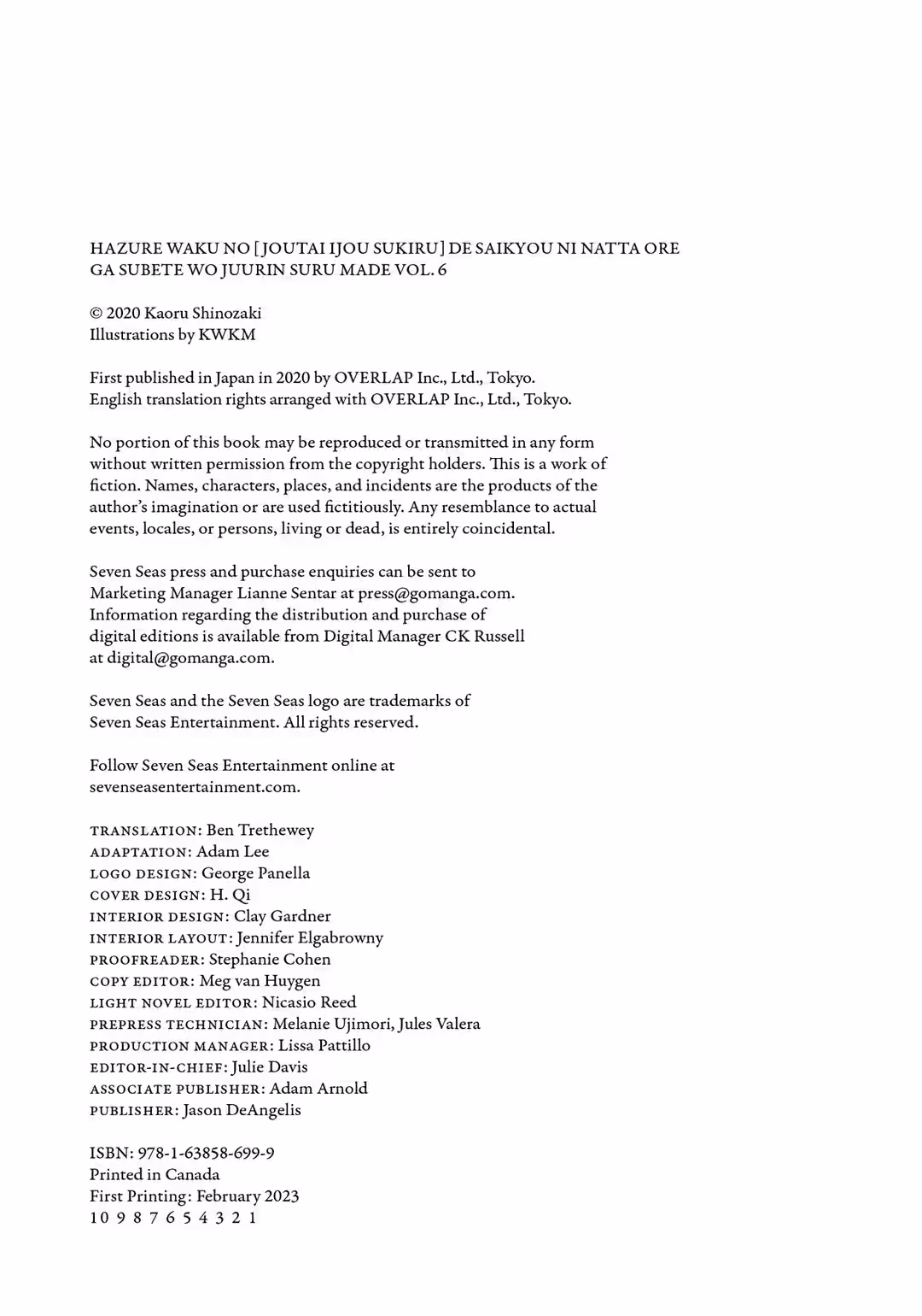 Thank you to M-sama (who is in charge of the manga adaptation) and to everybody else who has helped bring this volume to print.