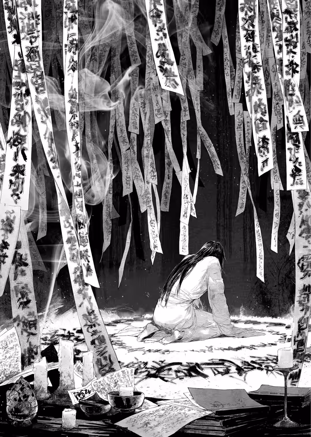 The nature of this “sacrificial ritual” was a type of curse. The caster was to harm themselves with a weapon, making cuts on their body and using their own blood to draw the array and write the spells within. They would then sit in the center of the circle and give up their mortal body to evil spirits, using the annihilation of their soul as the price to summon a nefarious, malicious ghost. This was all done in order to request the fulfillment of a wish. Thus, it was the opposite of “possession.”