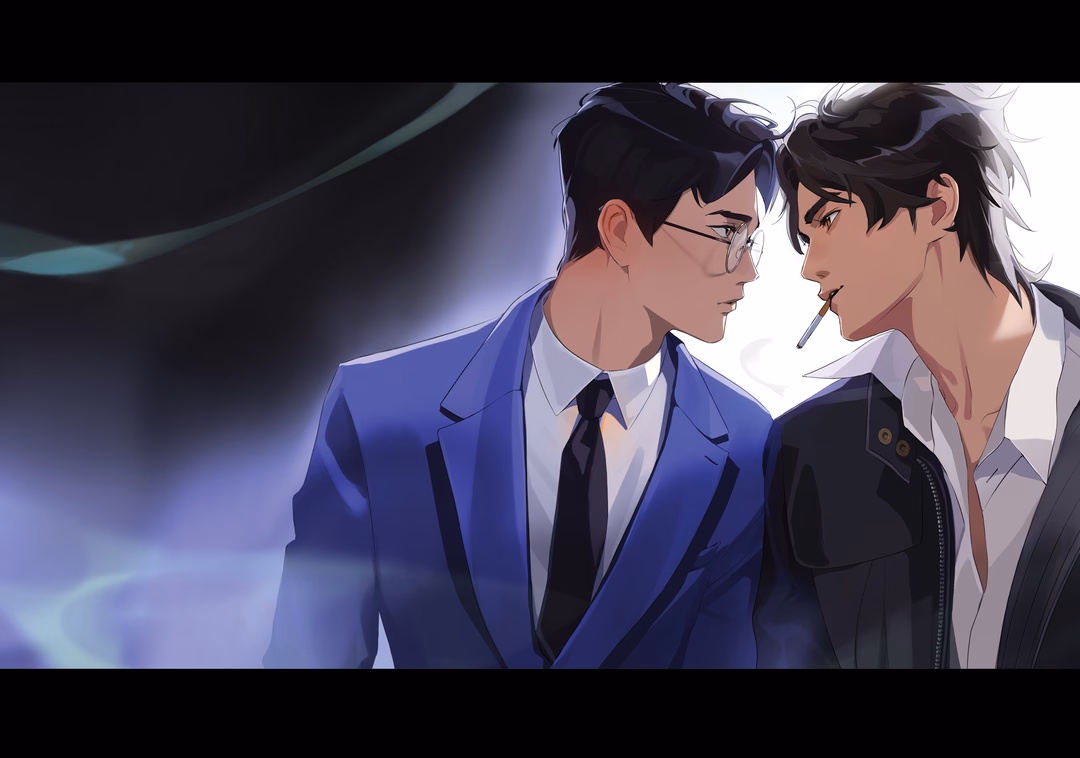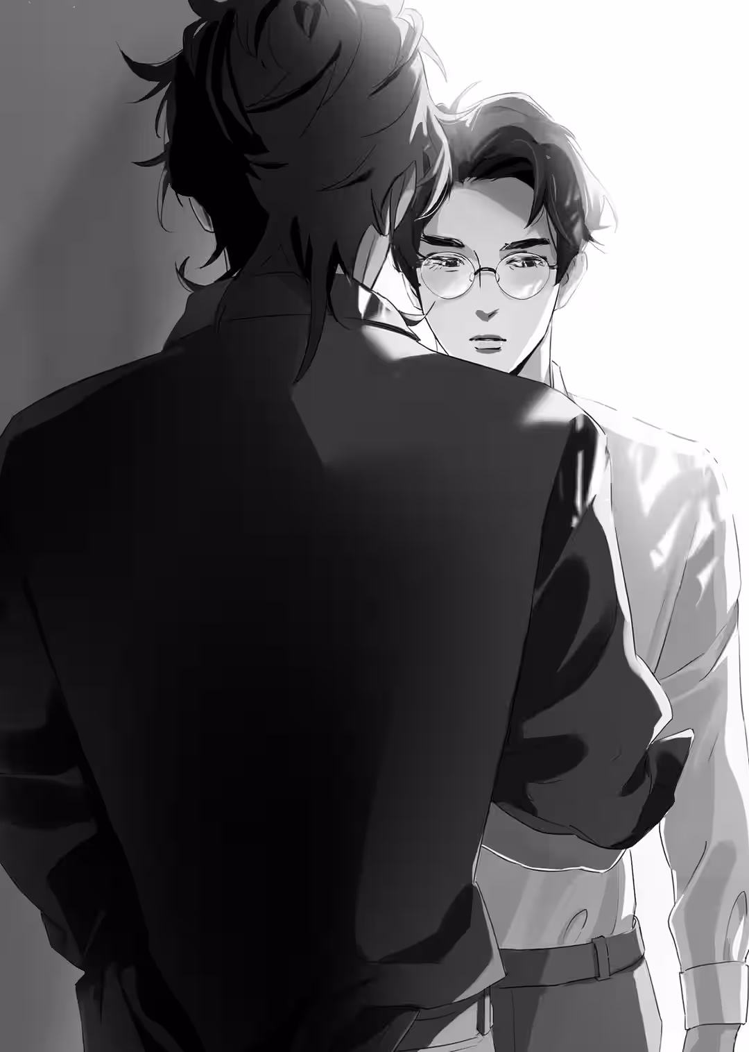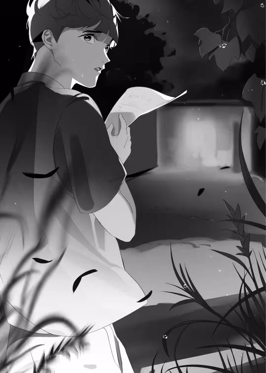 Just as cold sweat began to pour out of him in buckets, there came the sound of footsteps. A young man walked out of 4 Bright Avenue’s little garden with long strides. There was a cigarette in his mouth, and his hands were shoved in his pants pockets. He was tall, with upright shoulders, thick brows, deep-set eyes, and a defined nose. He was very handsome, even if his expression was a little dark.