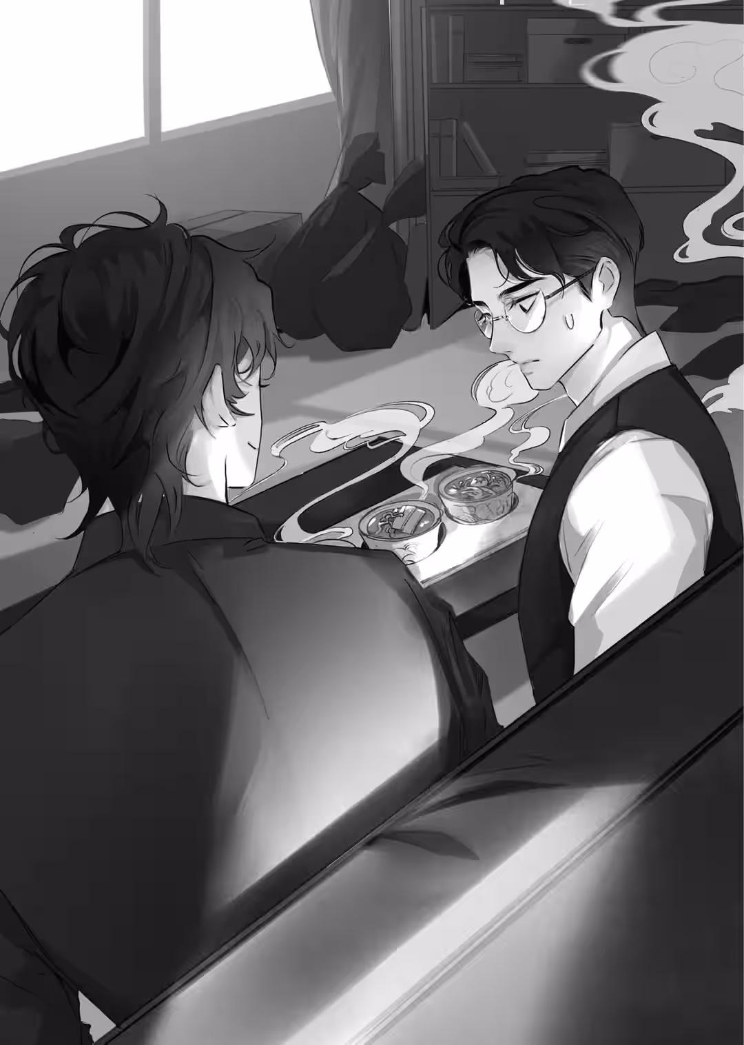 “Hey, is there food?” Zhao Yunlan came dashing through the criminal investigation unit’s door. Catching sight of Chu Shuzhi, Zhao Yunlan gave him a quick pat-down without another word. When his search turned up a hard-boiled egg in Chu Shuzhi’s coat pocket, he unceremoniously claimed it for himself.