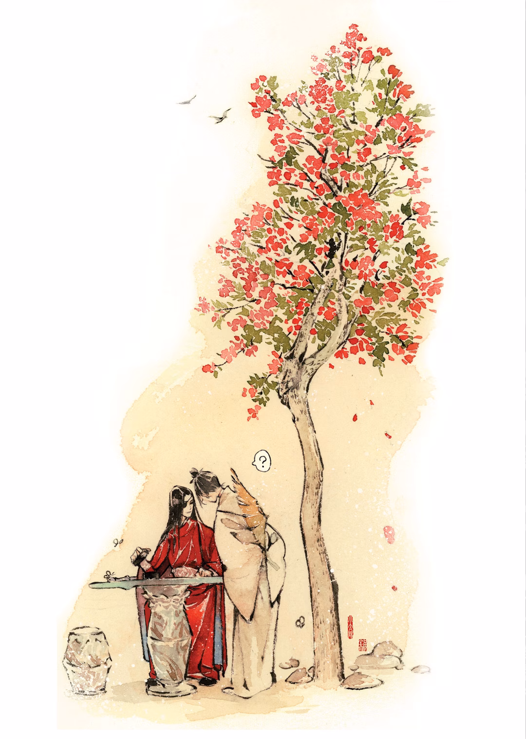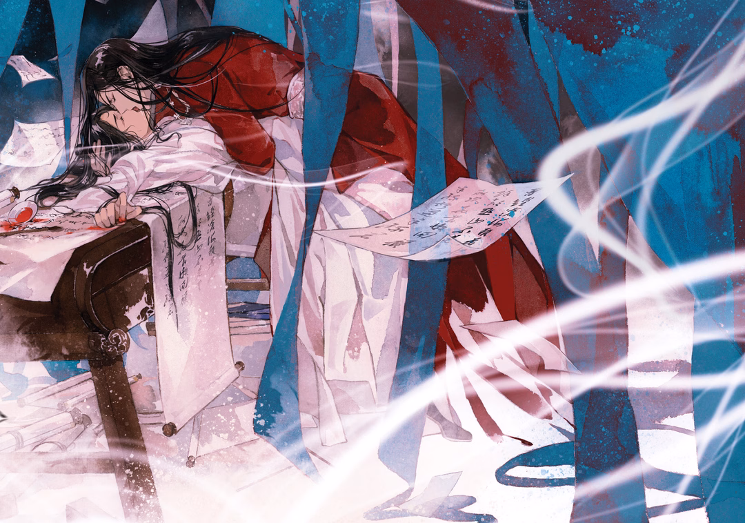 Shi Qingxuan had cast an isolation spell to seal Puqi Shrine and prevent Qi Rong from listening at the door and eavesdropping on their discussion. But that spell also made it hard for those on the inside to easily detect whether someone was tampering with things outside. When two similar spells collided, the more powerful one always won, and “power” wasn’t solely based on the caster’s abilities—it also depended on the materials used when spellcrafting. Ming Yi had used the aged cinnabar that Xie Lian picked up while collecting junk—stuff that had been discarded by his cultivation peers. If someone had used fresh blood to weave their own array, it would naturally be stronger.