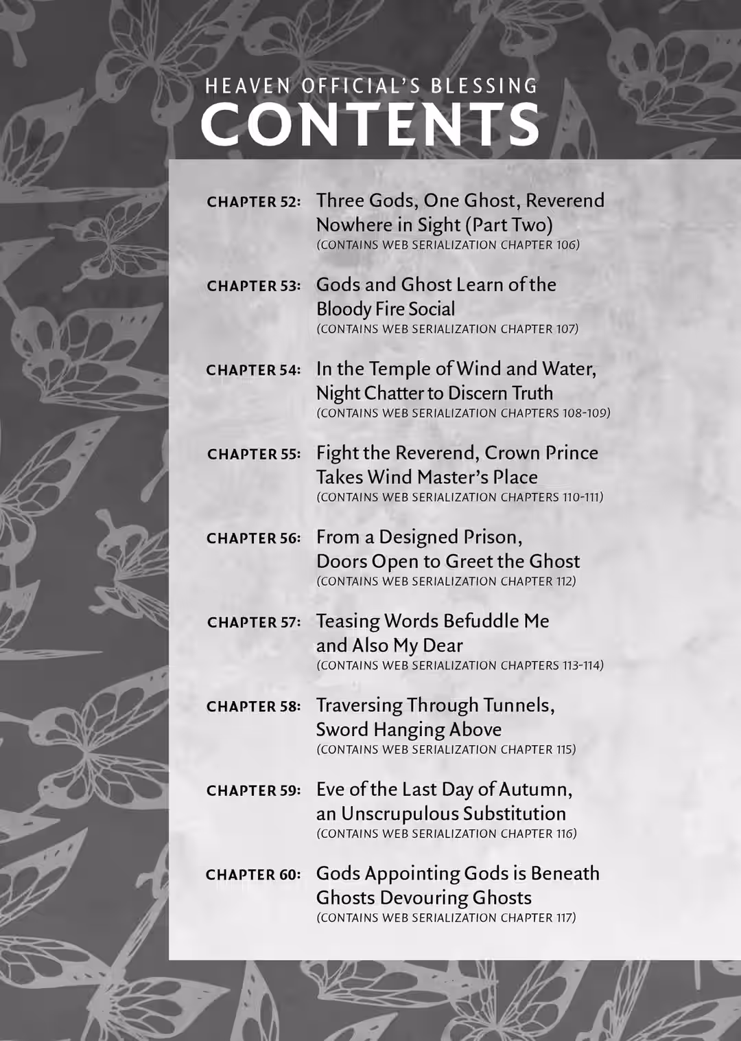 “Mm-hmm. It’s common for a wolf to cry wolf to shift the blame,” Hua Cheng said. “Why exactly are you here? If you and your esteemed brother are genuinely scared of the Reverend of Empty Words, why were those raggedy scrolls so sloppily cobbled together? It’s not a stretch of the imagination to think that the two of you schemed to intentionally lead us here.”