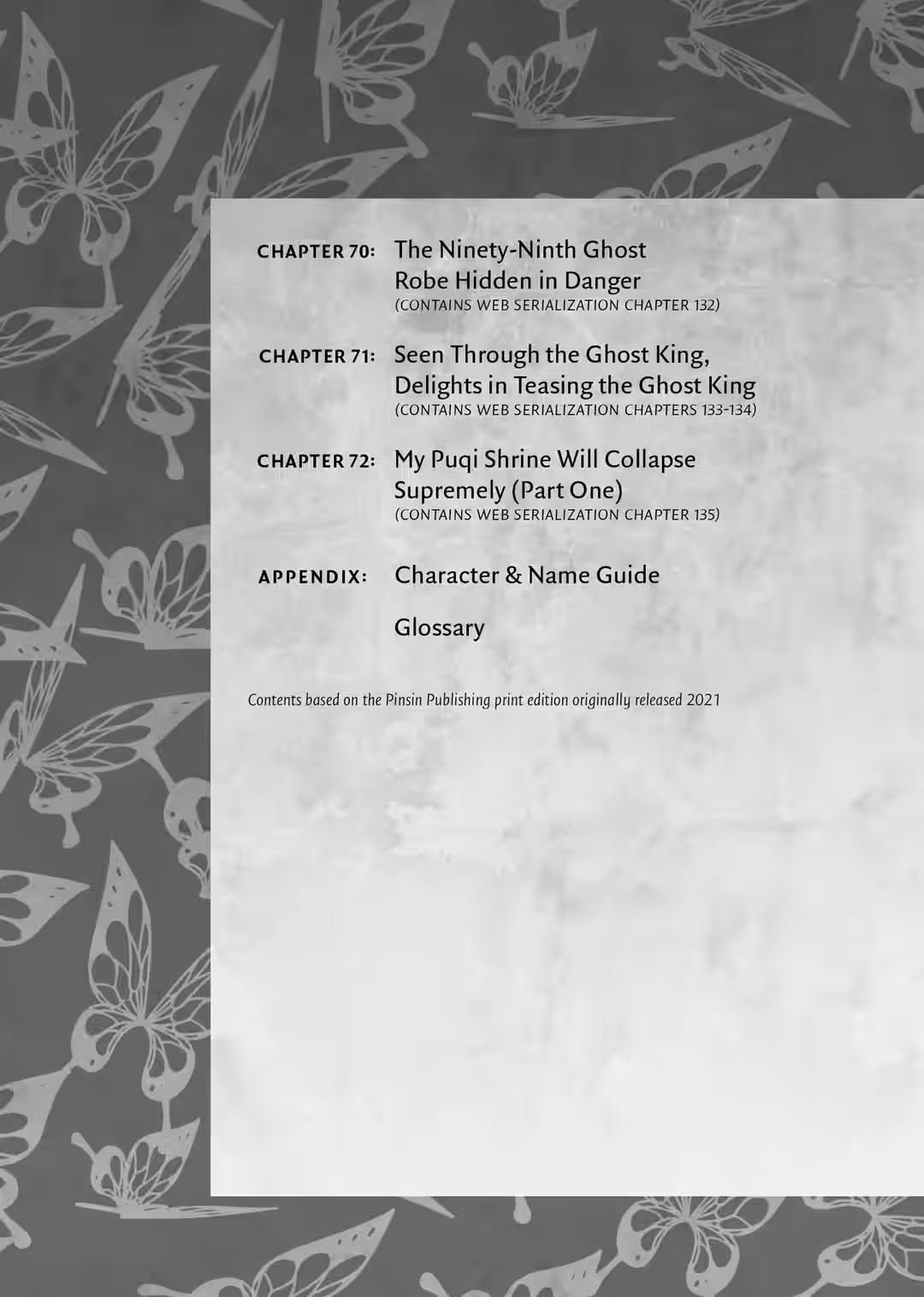 Which meant it happened in the moment after Ming Yi had finished drawing the array—when Shi Qingxuan blew out the candles and Puqi Shrine fell into darkness. However, that contradicted Xie Lian’s own theory.