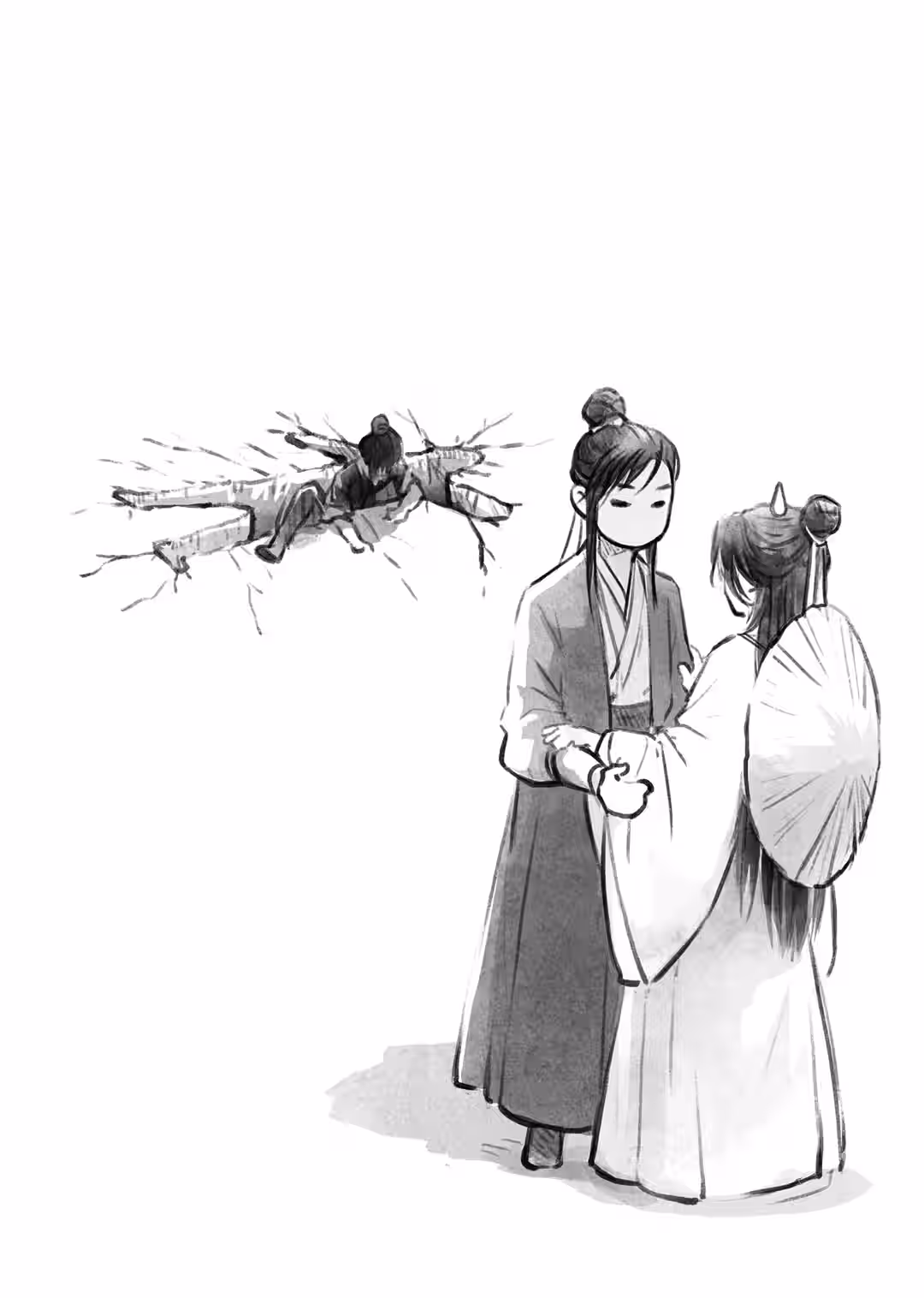 Shattering the establishment plaque of a heavenly official’s temple was an enormous taboo. Ming Yi dropped his hand, his expression icy. Shi Qingxuan stood in numb shock for a moment, but he then spirited away the broken pieces of the plaque with a sweep of his sleeve.