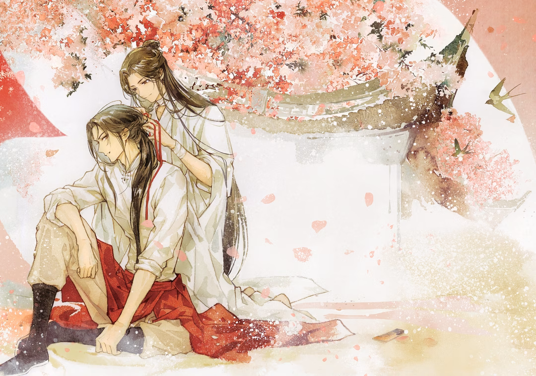 MXTX’s work has subtle numerical theming around its love interests. In Grandmaster of Demonic Cultivation, her second book, Lan Wangji is frequently called Lan-er-gege (“second brother Lan”) as a nickname by Wei Wuxian. In her third book, Heaven Official’s Blessing, Hua Cheng is the third son of his family and gives the name San Lang (“third youth”) when Xie Lian asks what to call him.