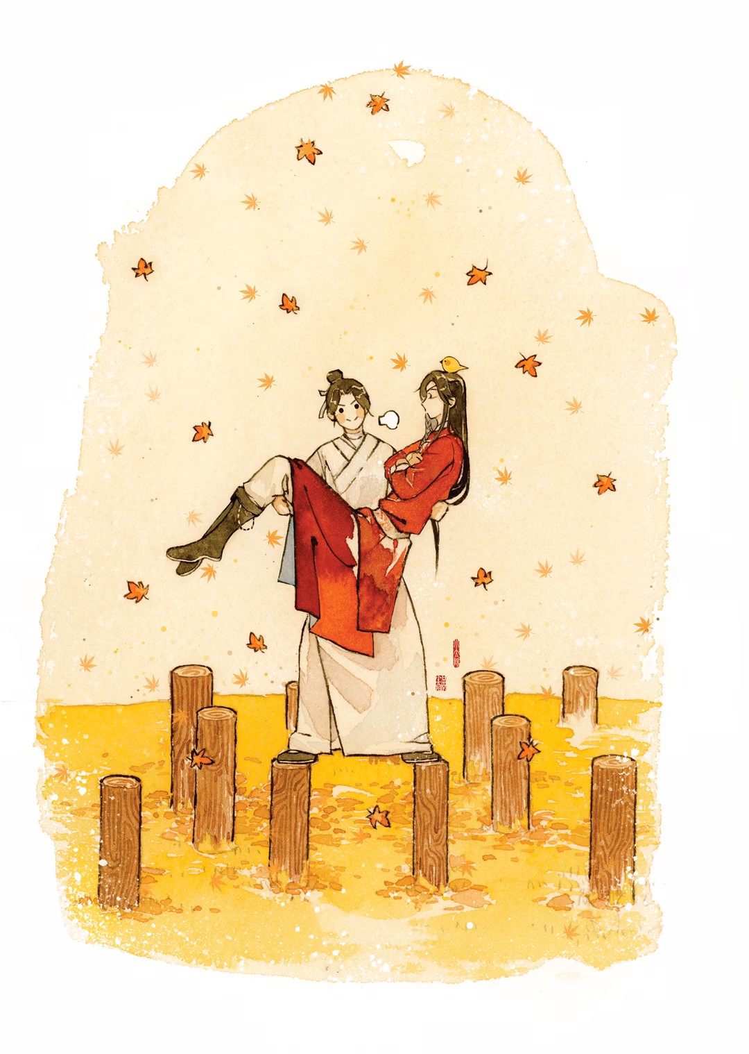 Hua Cheng couldn’t return to Ghost City, and Xie Lian couldn’t take him to the heavens lest they be exposed by a heavenly official. This was why the two were frolicking aimlessly in the Mortal Realm’s crowds without a destination in mind.