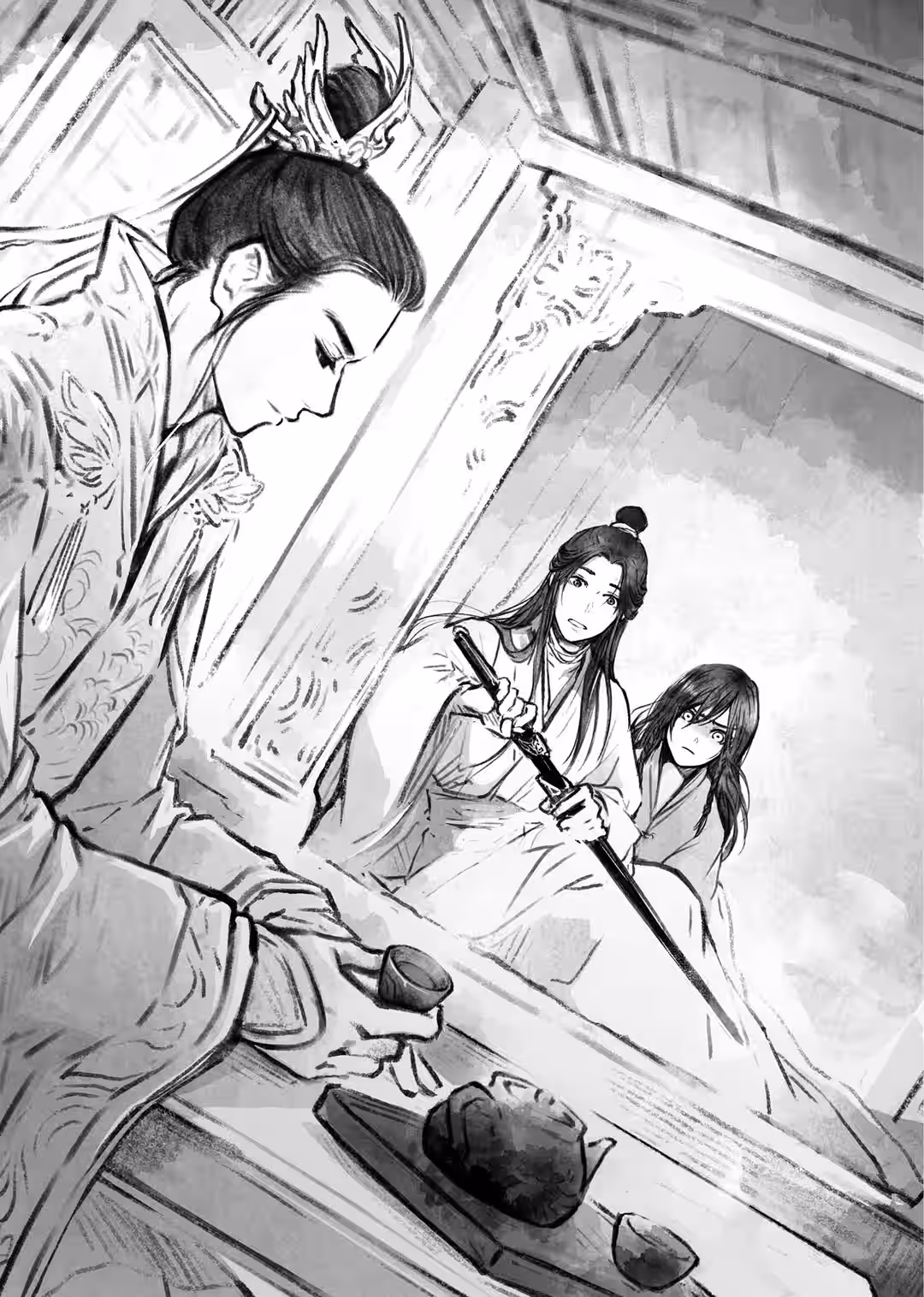 Hua Cheng buried his face in his shoulder. “…It’s not the same,” he grumbled, voice muffled. “Your Highness, I have to be the strongest. I have to become stronger than anyone else. Only then can I…”