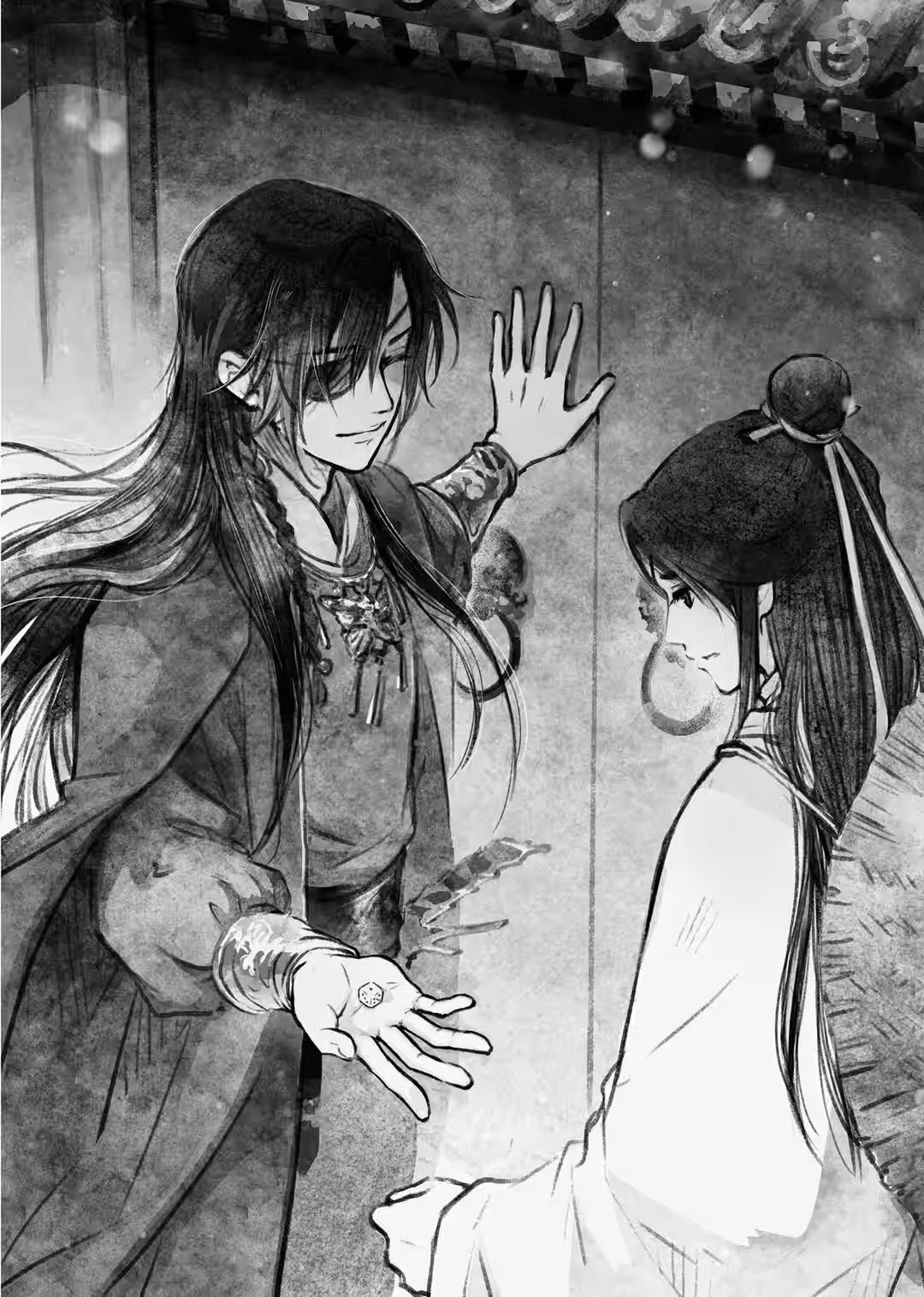 Xie Lian had cupped Hua Cheng’s cheeks on instinct, and he couldn’t pinpoint exactly why he was doing it—surely it was to comfort him, but perhaps he was also worried Hua Cheng would get frostbite from the snowstorm. After all, for as long as Xie Lian had been in the Kiln, Hua Cheng had been out here guarding the mouth of the volcano.