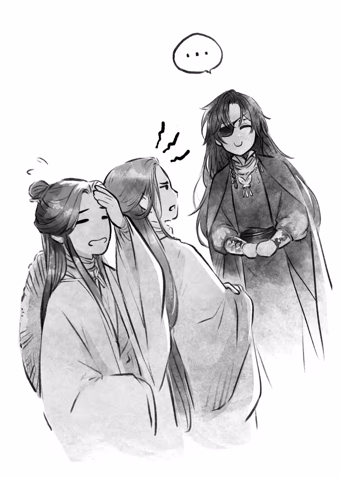 They had jumped in together so easily, and Hua Cheng was thrown outside so abruptly. He’d had no idea what was going on inside; of course he was about to lose his mind!