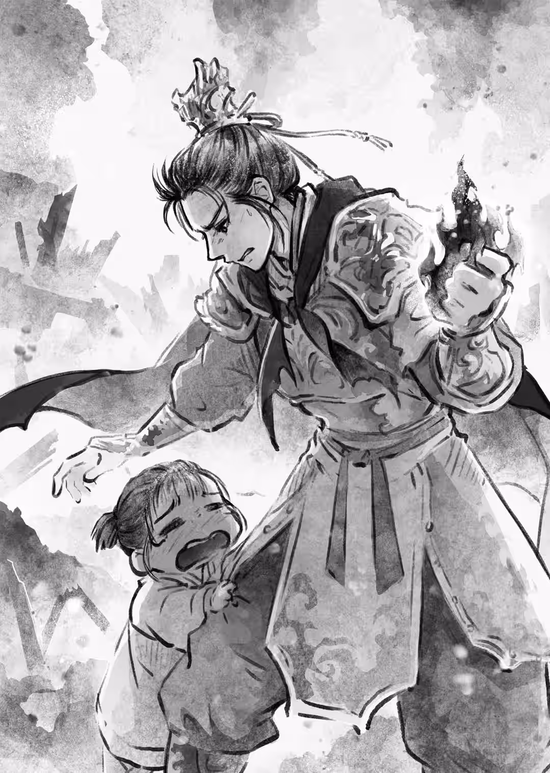 Hua Cheng stood before him. His raven hair was mussed, and there was a lost look in his eye. He gripped the cry-smiling mask Xie Lian hadn’t been able to remove no matter how hard he tried, easily tore it off, and tossed it away.