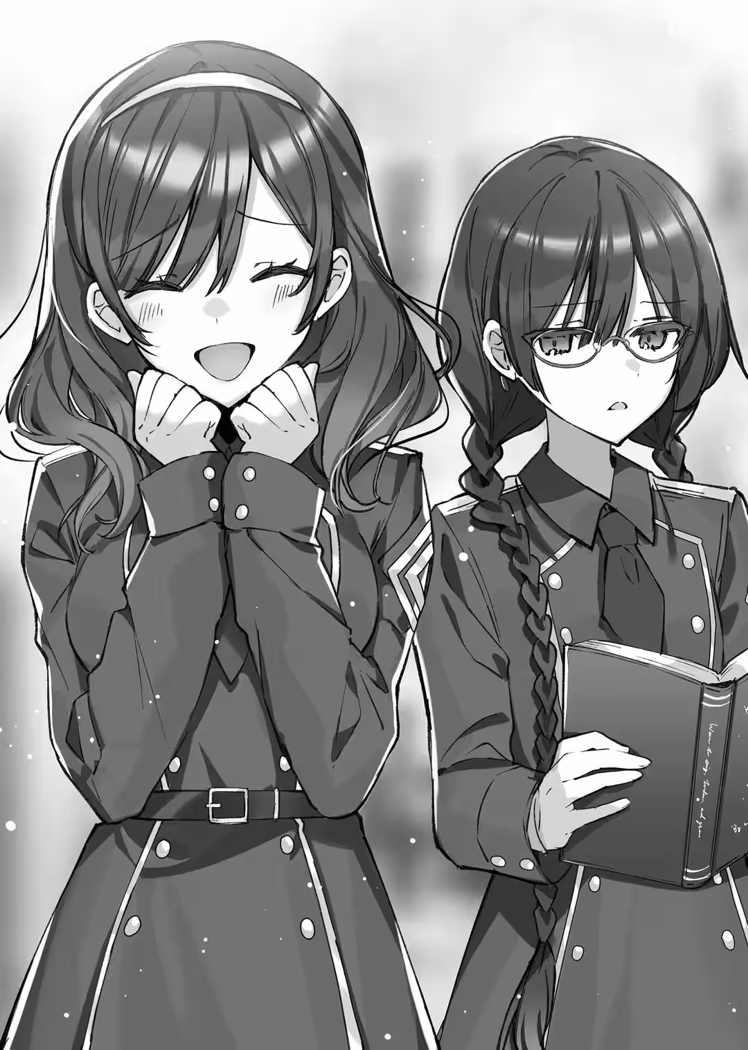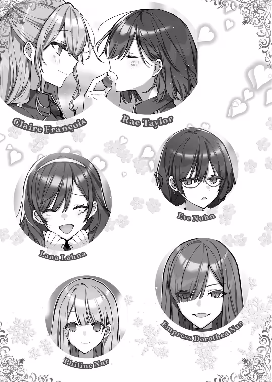 This volume ended on a real cliffhanger, didn’t it? I hope to delve into all the mysteries of the I’m in Love with the Villainess world in the next volume. At the time of writing this afterword, the web novel will be in the finale of Act 2. The developments that follow this volume in Chapters 16 and 17 are really quite something; I’ve already greatly enjoyed the cries of those who’ve read it while wearing a sadistic smile on my face. I hope you’ll enjoy the coming conclusion to Rae and Claire’s story—one about a love that can shape the future.
