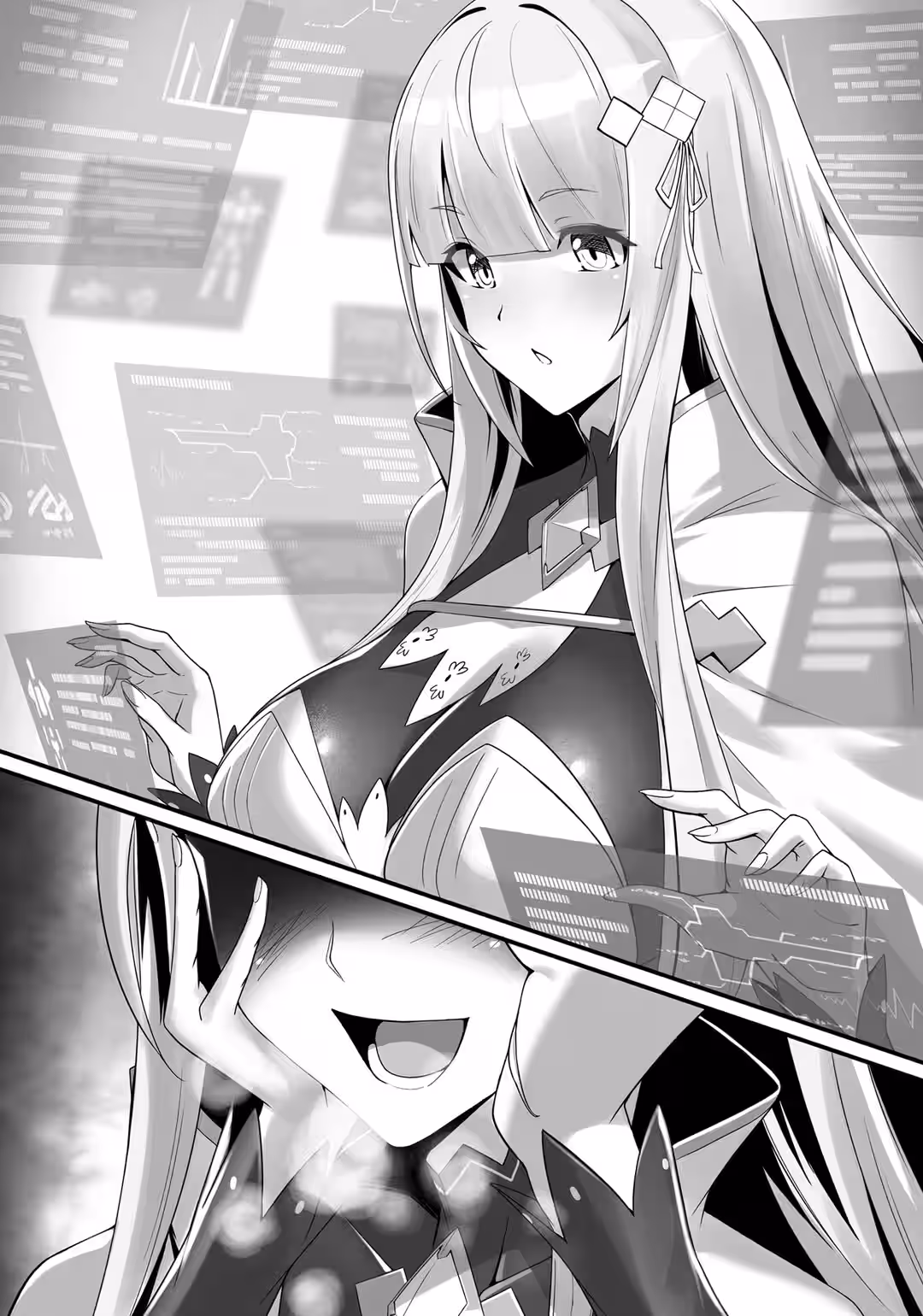 I snapped my fingers, and the three-dimensional hologram switched to a mannequin-like figure wearing a maid uniform. The figure was clearly based on Rosetta. As I enjoyed her flustered reaction, I summoned a certain person to the room.